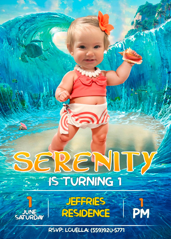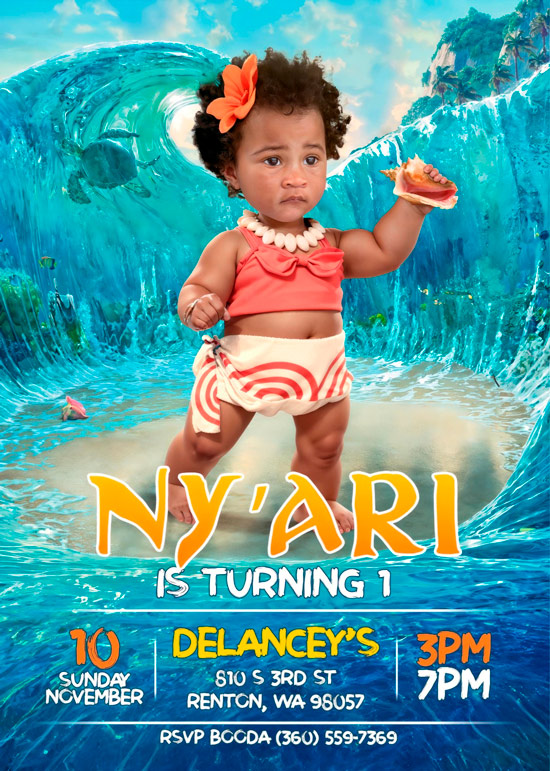 The ocean is calling her name! Order your custom Baby Moana invitation today for just $9.99.