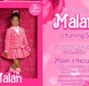 The Barbie invitation came out perfect! I accidentally chose the wrong template & they changed it for me at no extra cost. They were super fast, friendly and efficient! Could not have chosen better people to do my daughters invitation! 🙂 It came out perfect, I highly recommend, & will be back!