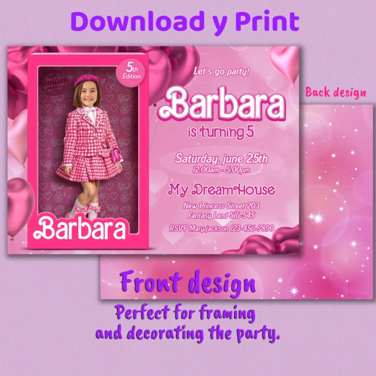Barbie Birthday Invitation with Photo – Personalized 5×7 Vertical (24h Delivery) – Digital Download