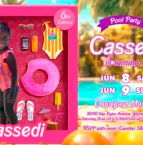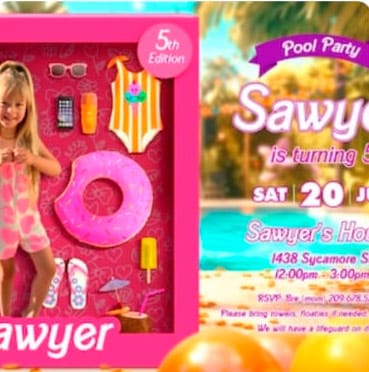 Turn your little oneβs birthday into a sun-soaked celebration with our Barbie Pool Party Birthday Photo Invitation!