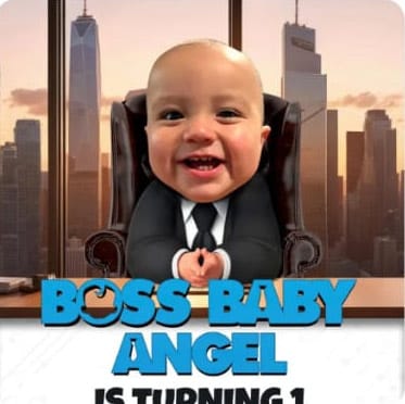 Weβll hand-edit your child into the Boss Baby office scene, complete with tie, executive desk details, and corporate lighting effects.