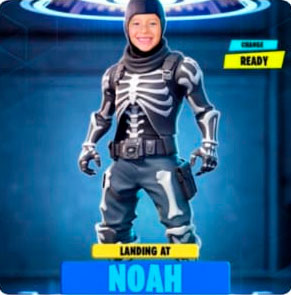Your child can choose their favorite Fortnite skin — skeleton, Optimus Prime, Ninja Turtle, Spiderman, Wolverine, hooded warrior, Dr. Doom, Deadpool, Stormtrooper, or even Darth Vader — to star as the hero of the celebration!