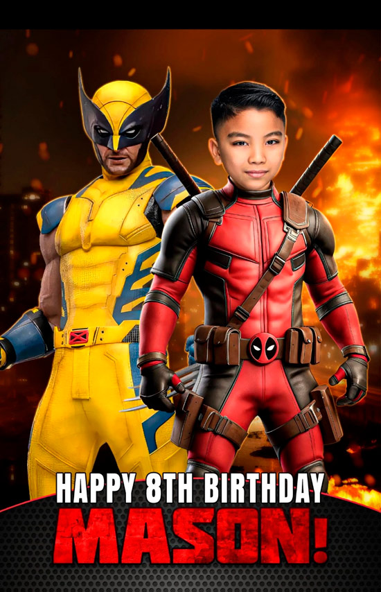 Turn your kidβs party into an action-packed, laugh-out-loud celebration with our Deadpool-inspired photo invitation!