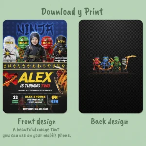 🥷 Lego Ninjago Birthday Invitation with Photo – Personalized 5×7 Vertical (24h Delivery) – Digital Download
