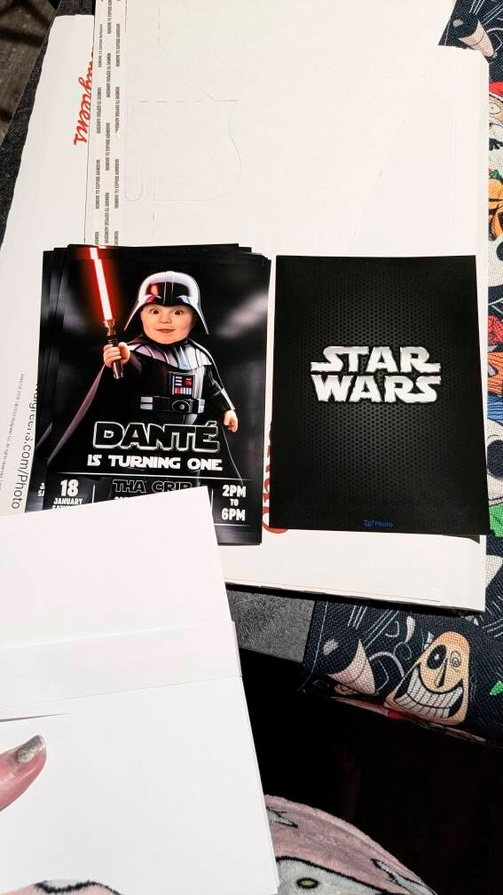 🌌 Star Wars Baby Vader Birthday Invitation with Photo – Personalized (24h Delivery) – Digital Download