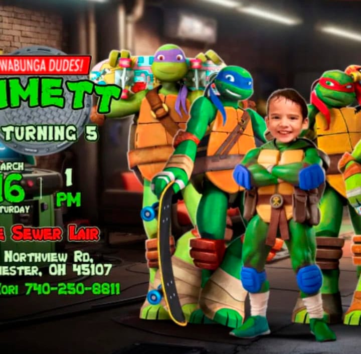 Get ready for an action-packed birthday celebration with our Teenage Mutant Ninja Turtles Birthday Invitation with Photo!